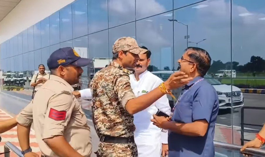 मंत्री के स्वागत की तैयारी में हंगामा — दतिया एयरपोर्ट पर इंस्पेक्टर और सिपाही में जमकर झड़प