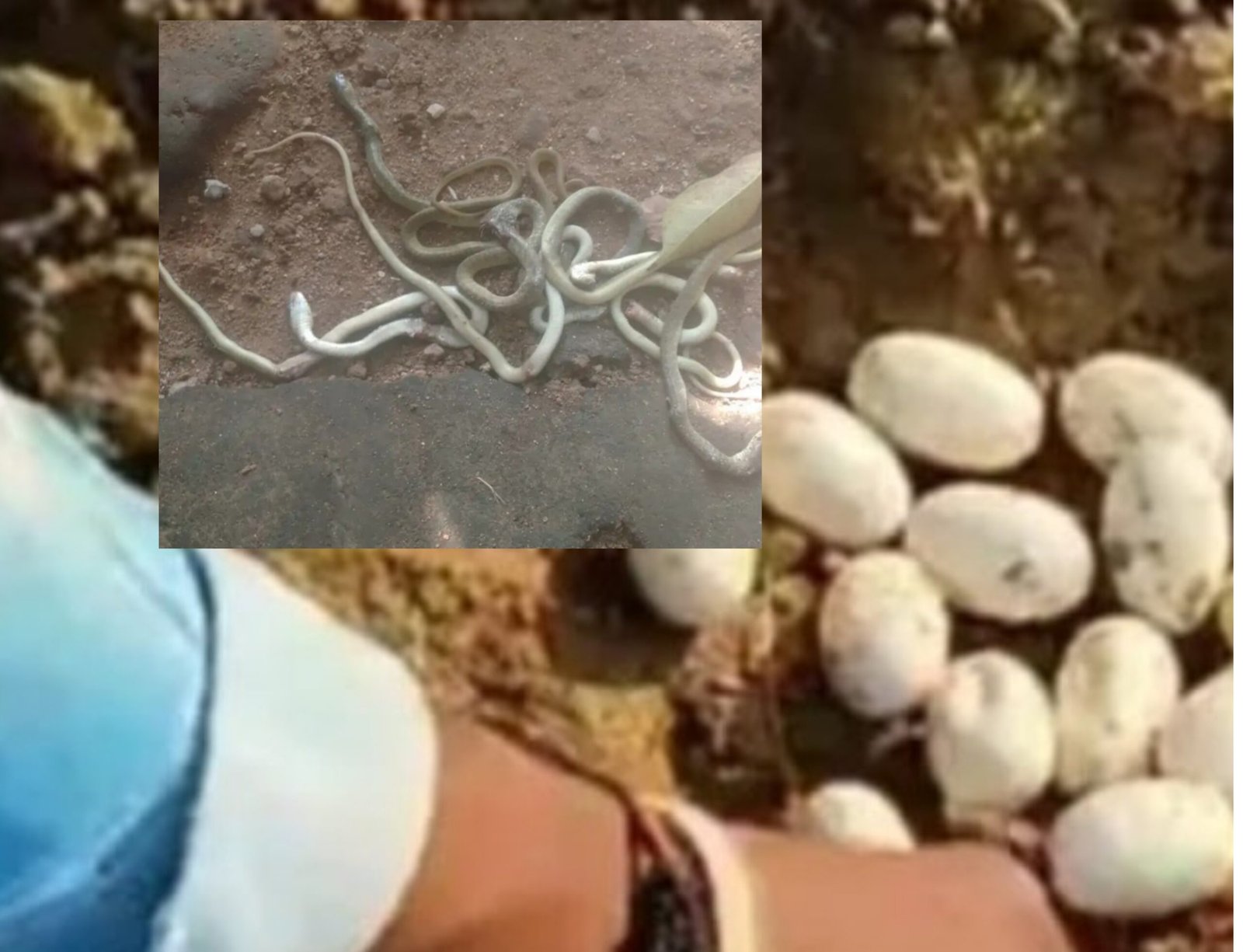 स्कूल भवन की तलाशी शुरू हुई तो असली खौफनाक मंजर सामने आया। दीवार के किनारे ईंट हटाते ही सांपों के अंडों का बड़ा ढेर और कई जिंदा सांप दिखाई दिए। घबराए ग्रामीणों ने डंडे–पत्थरों से हमला कर 10 सांपों को मार डाला।